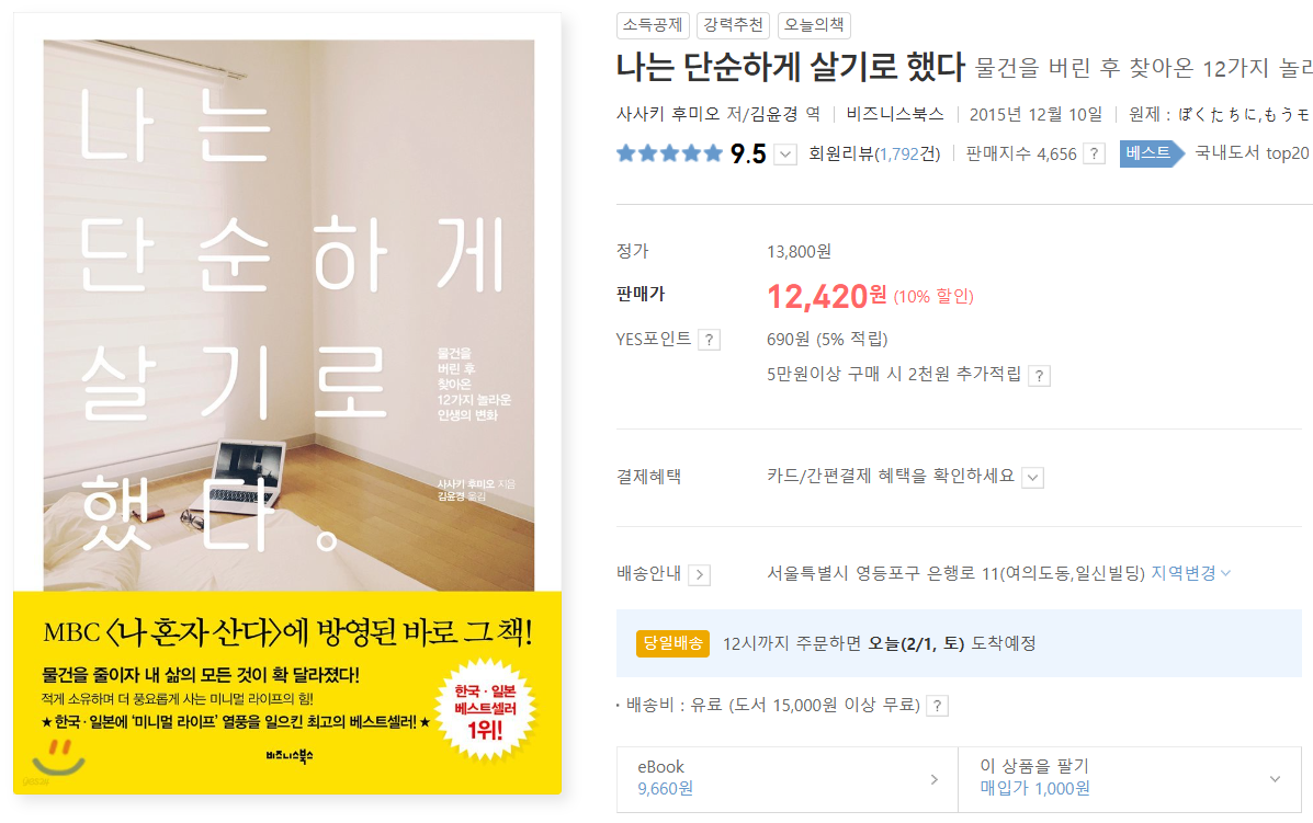 간소생활을 실천하는 데 도움이 되는 도서도 많이 있습니다. 그 중에서 두 권을 추천드립니다.